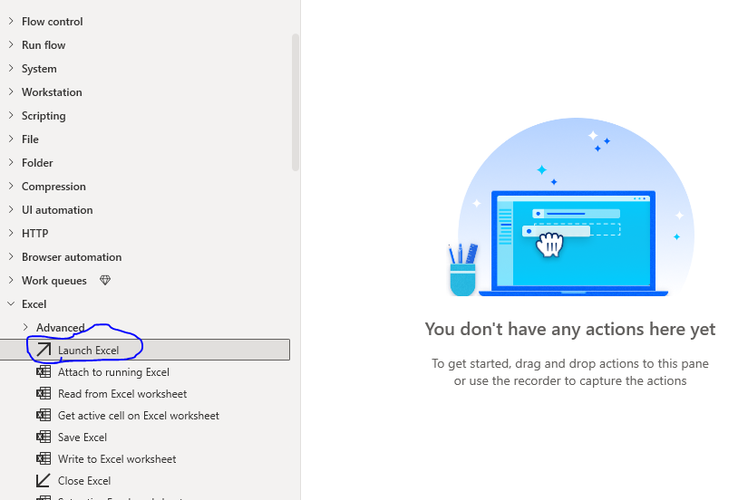 First you have to sign in to Power Automate desktop for downloading PAD click here Then from actions under excel you have to click on "Launch Excel" action.