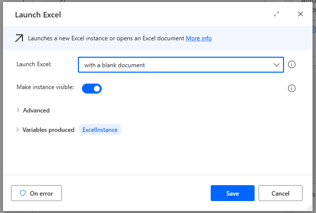 Launch Excel in Power Automate