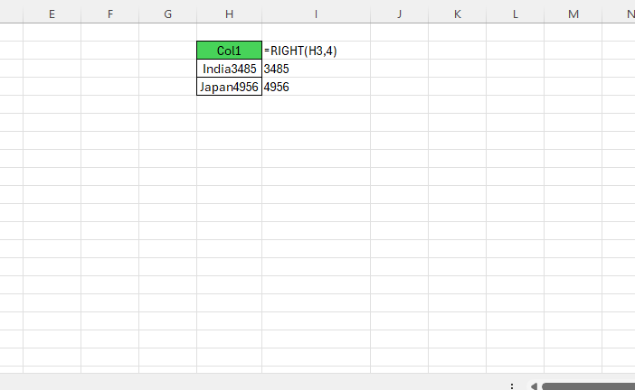 formula in excel. right formula will return the specified numbers of chars(4 in this case) from end of string as show in image below.